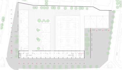 L’edifici, per tant, s’obrirà a aquests dos patis i farà front al carrer Via Augusta per tal de donar continuïtat a aquest carrer amb l’alineació.